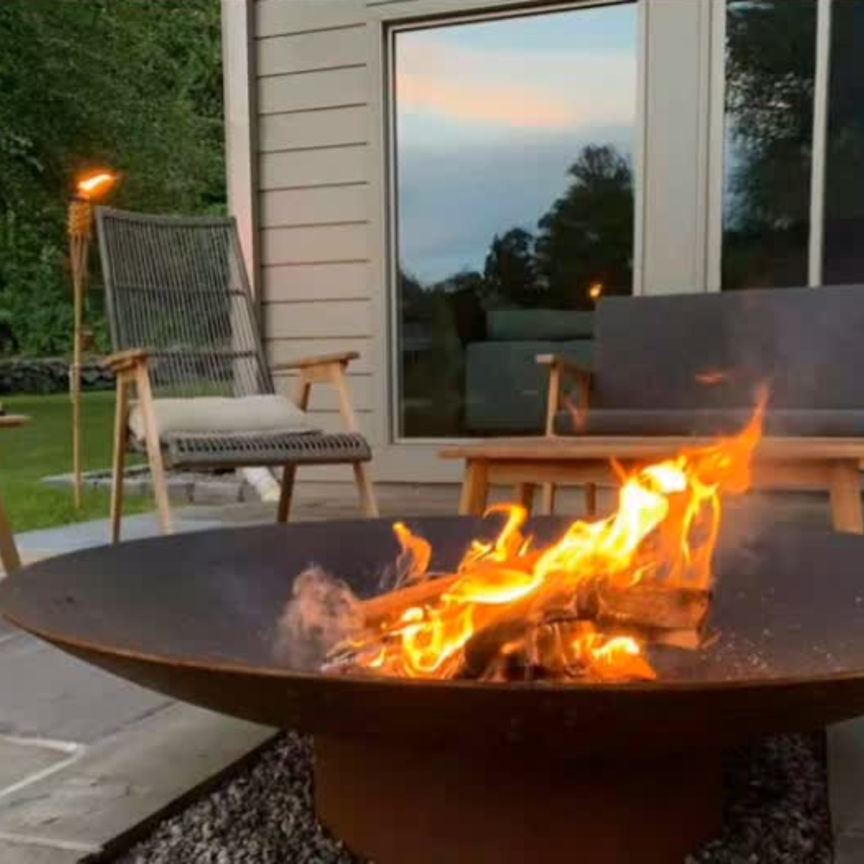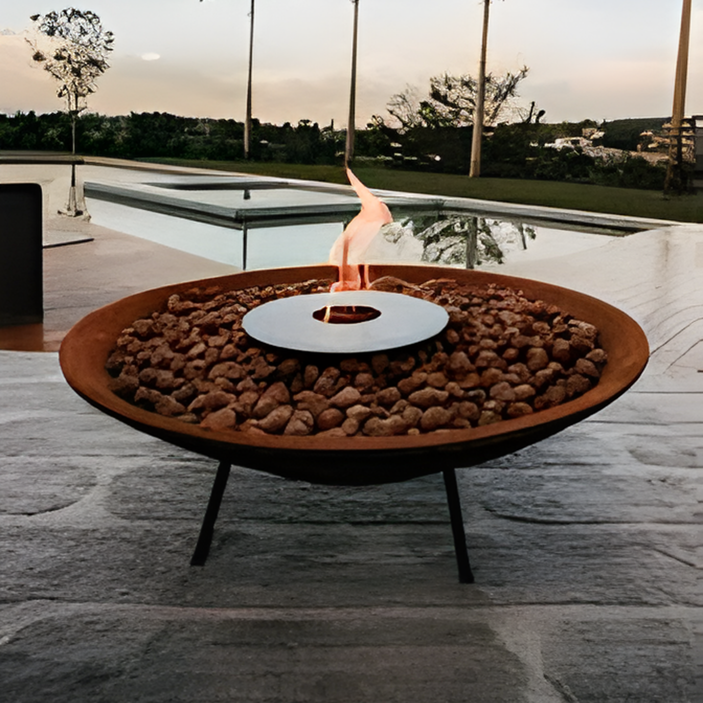 Uma lareira em aço corten vai além de um elemento decorativo, ela transforma completamente a atmosfera da área externa, criando um ponto focal elegante e convidativo para momentos especiais. O calor, a iluminação natural da chama e o design marcante proporcionam conforto e requinte.